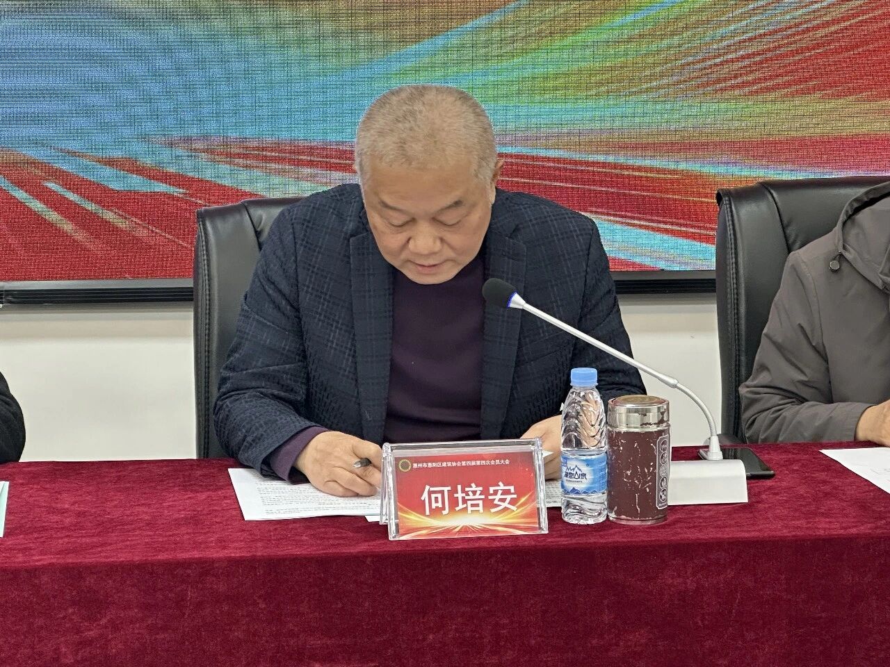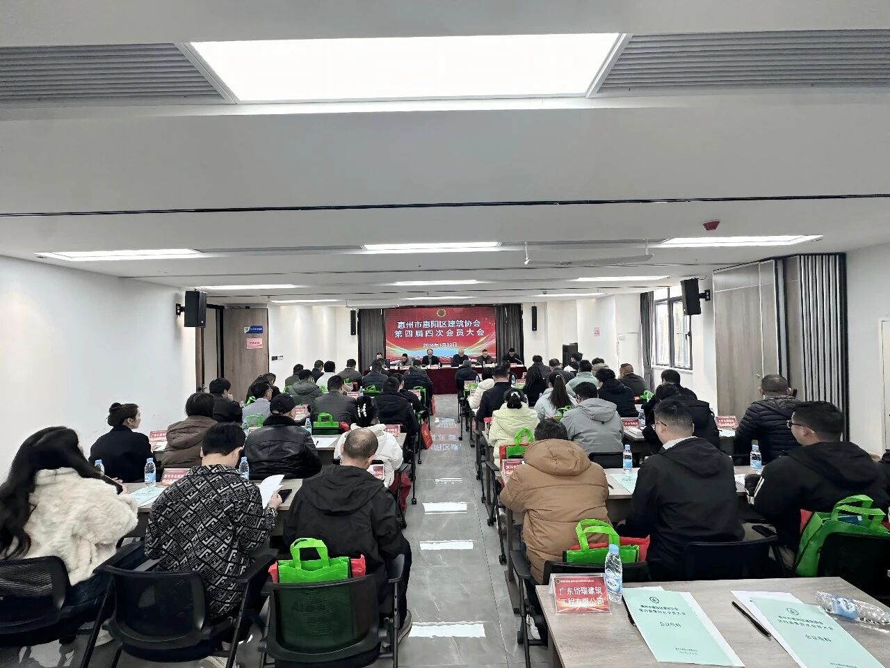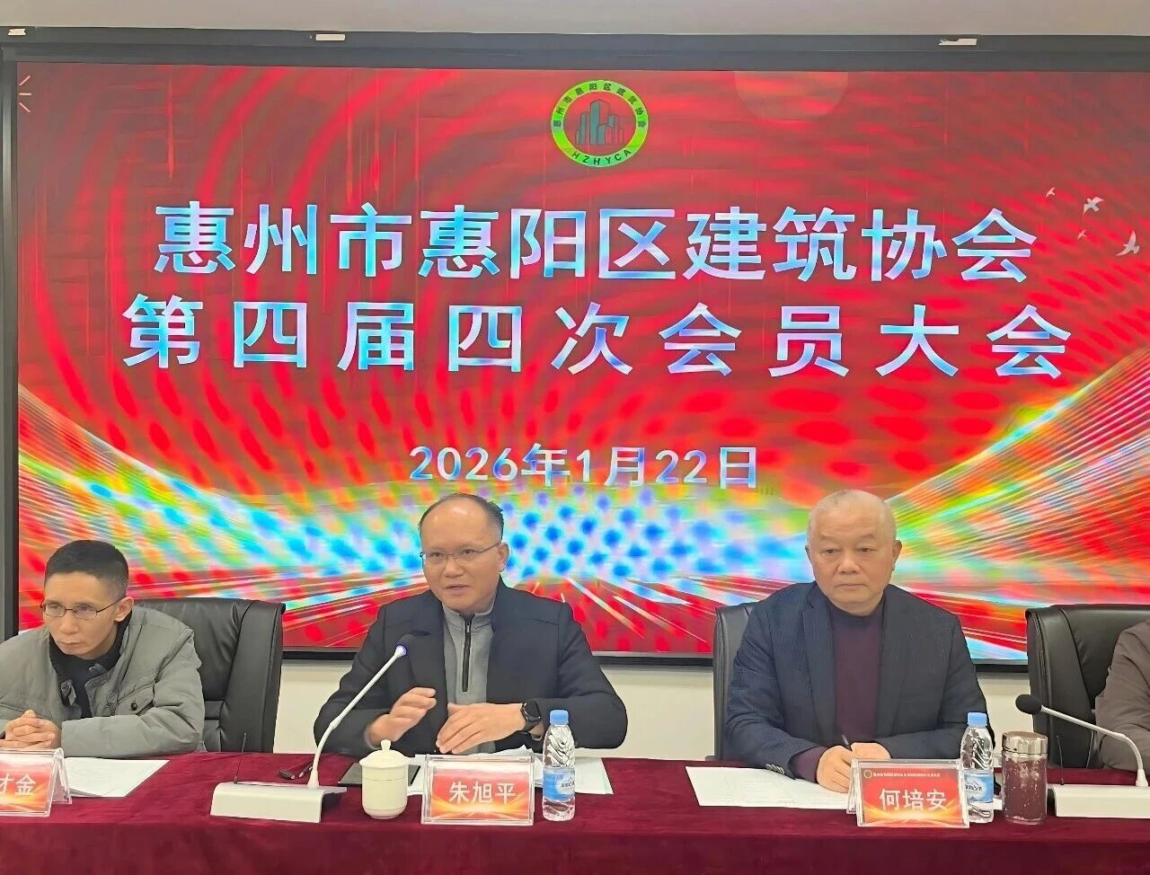 2026年1月22日下午,惠州市惠阳区建筑协会在会议室顺利举办了第四届第四次会员大会。区民政局党组成员、副局长朱旭平,区民政局社会组织管理股股长罗伟文,区住建局建筑市场管理股股长胡才金,协会会长何培安,协会监事长李卓伦及49家会员单位参加本次大会。
